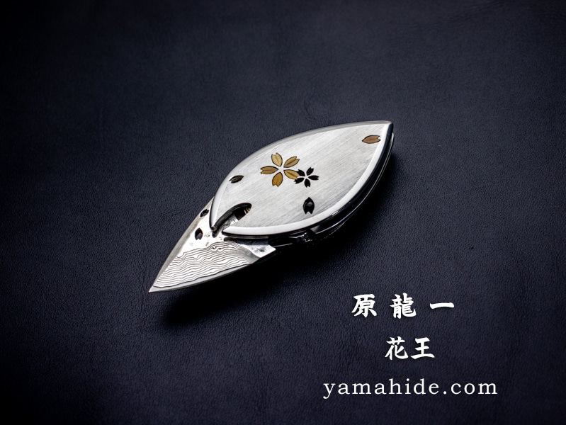 【受注生産】原 龍一 作 花王 ミラー 花 ピンク VG-10 ダマスカス 折りたたみナイフ Dew Hara KAO custom knife