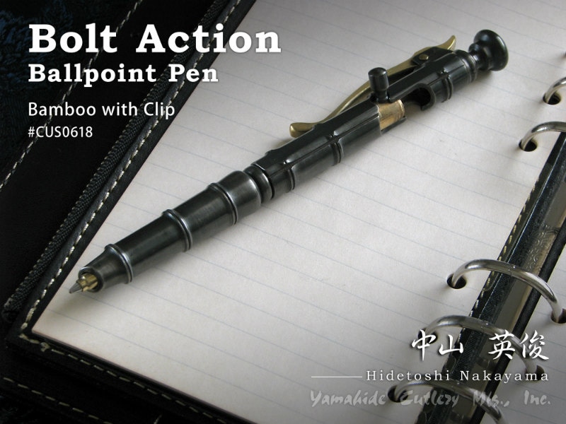 This is a ballpoint pen crafted by Hidetoshi Nakayama, a world famous custom knife maker as well as a chaser. The knocking mechanism of the pen is grounded on the bolt-action system of rifles. You may also like the feel of the good old days.