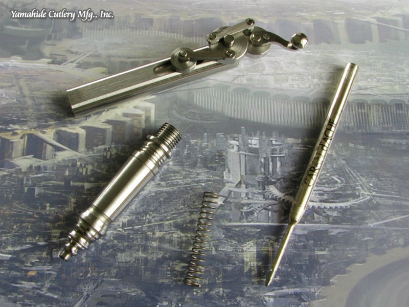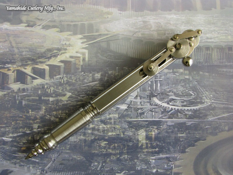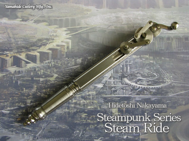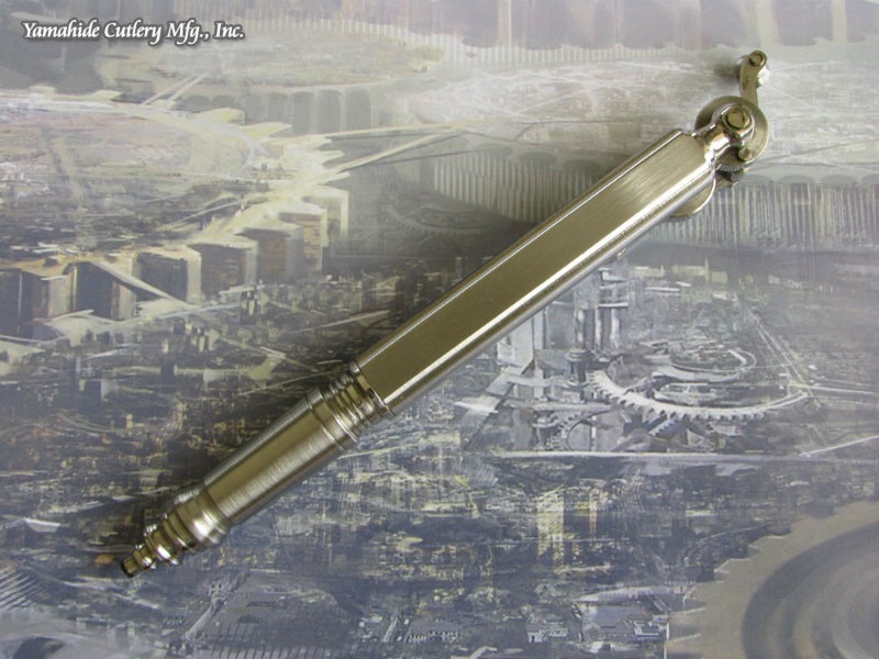 This is a ballpoint pen crafted by Hidetoshi Nakayama, a world famous custom knife maker as well as a chaser. Steampunk is a field of art that represents "the future imagined in the old times". These pens of Steampunk series have that "Future" in their designs.