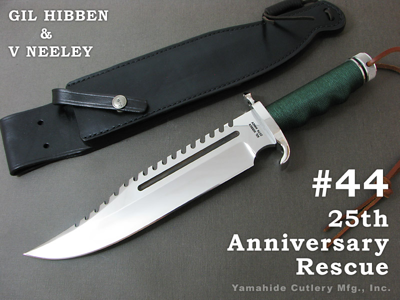 その後もこの "Rescue" を求めるお客様からの熱望は冷めることはなく、遂に Rambo III の25周年を迎えた2013年の今、Gil Hibben と Vaughn Neeley がチームを組んで、100本限定で "Handmade 25th Anniversary Rescue Knife" と特別に Marking を入れた RescueKnife を製作することにしました。