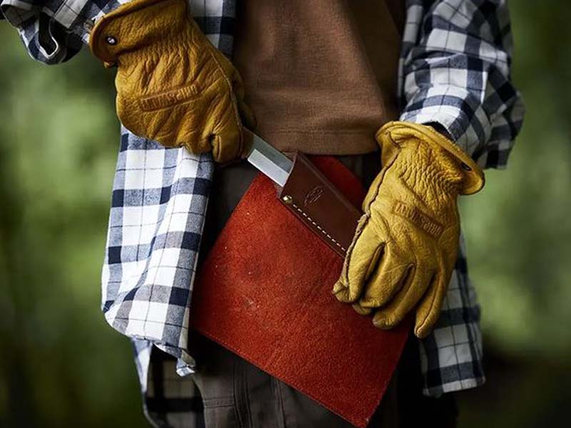 革ケースも可動式になっているためベルトを外さなくても脱着ができる使用となっており、ブッシュクラフトシーンでの作業がプロ仕様としても評価を経ています。