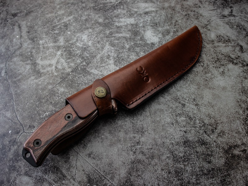 付属のブラウンレザーベルトシースにより携帯性と質感を兼ね備え、アウトドアからサバイバルシーンまで幅広く活躍します。