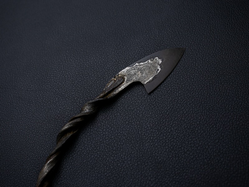 The twisted handle highlights dynamic form and the beauty of hand-forged steel.