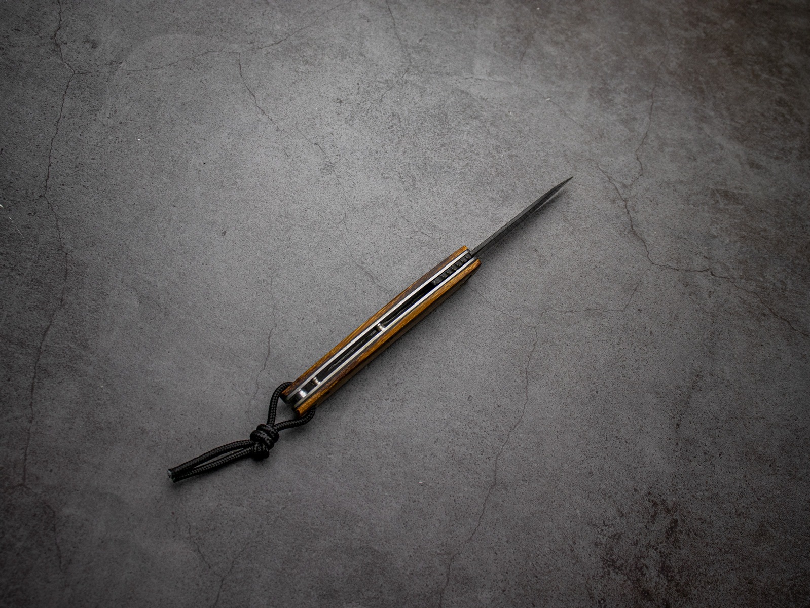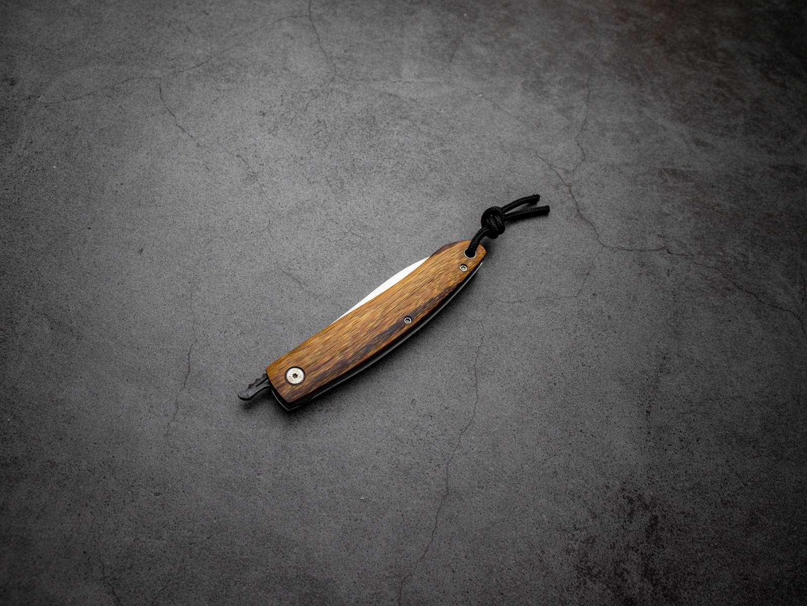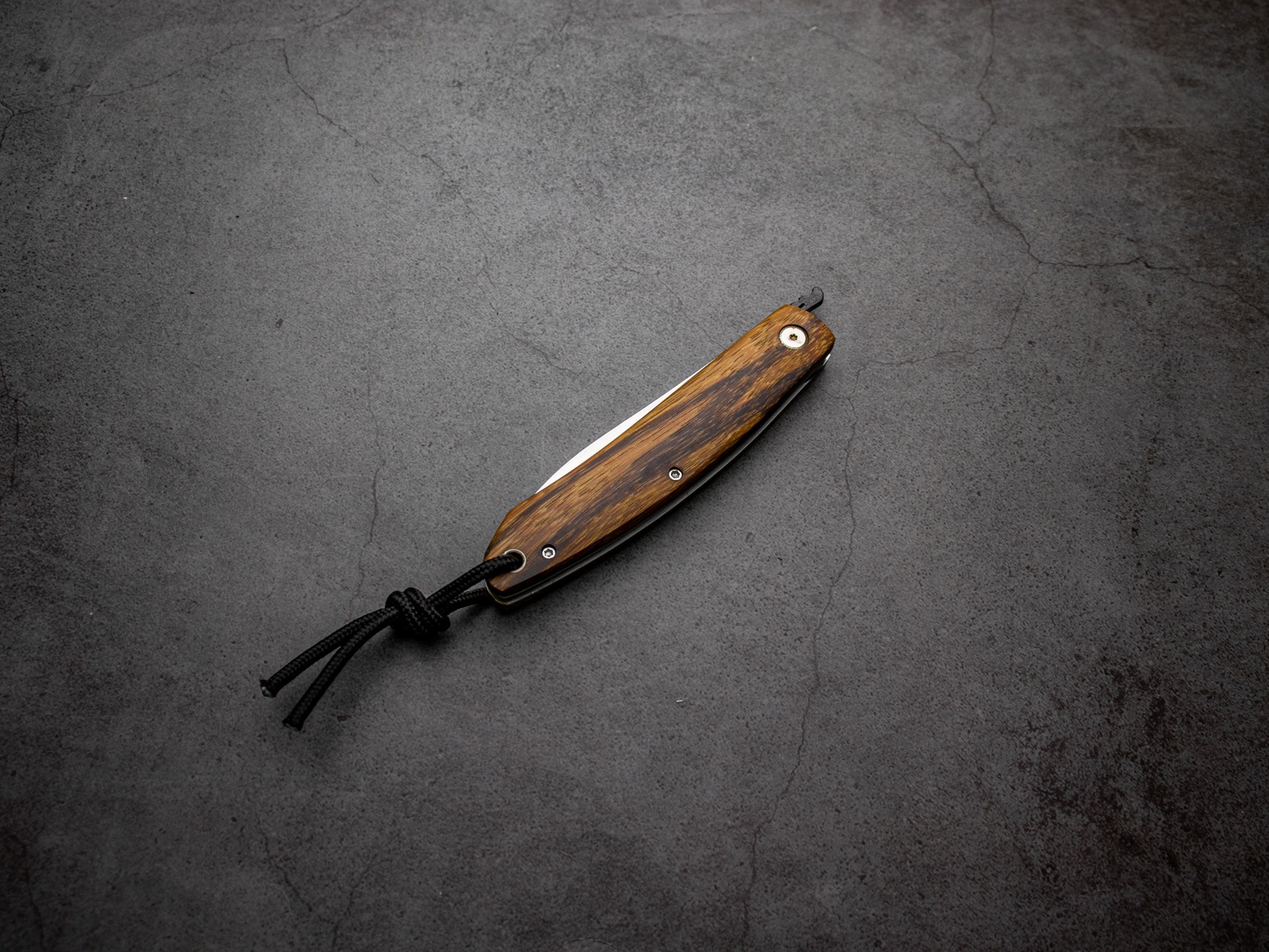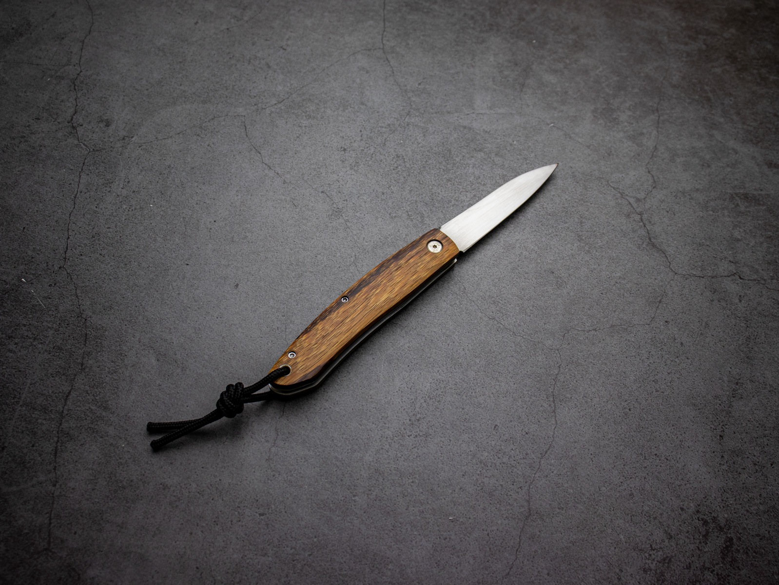 The handle is crafted from French snakewood, known for its distinctive grain and rich color, giving each knife a unique character.