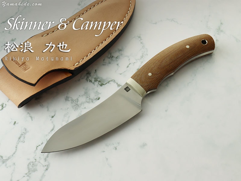 松浪 力也 作 スキナー & キャンパー 皮剥ぎ ブラウンキャンバスマイカルタ シースナイフRikiya Matsunami Custom knife
