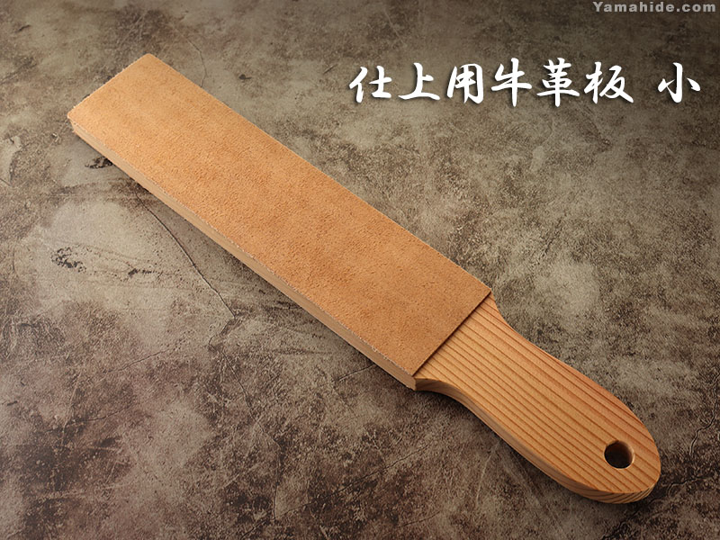 - 砥ぎの仕上げ用に牛革の床面を両面に貼った板をご用意しました。