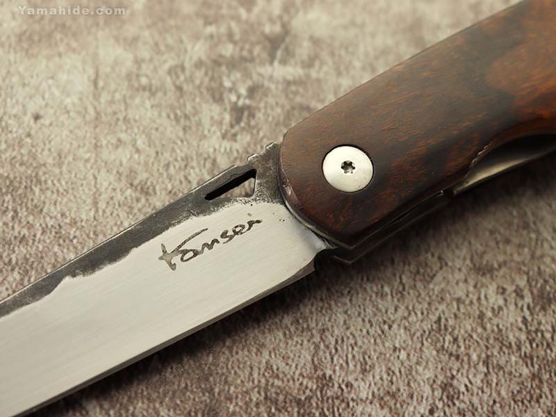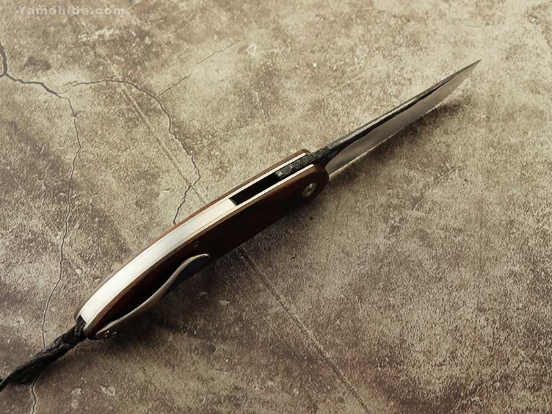 This is a flip-open knife with a unique flip design, which Mr. Matsuno designed, with the fingertip point protruding slightly above the handle, rather than being like a guard.