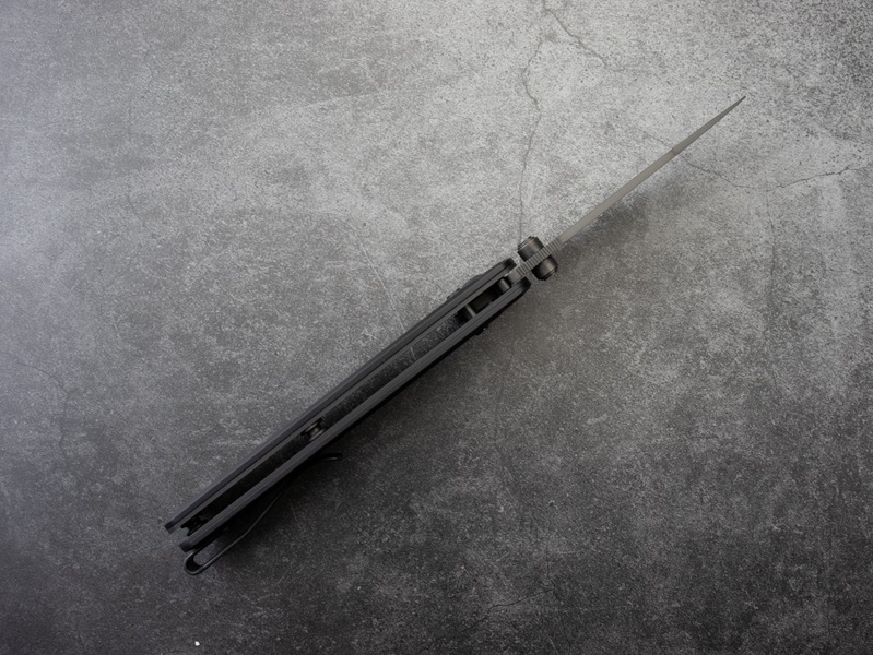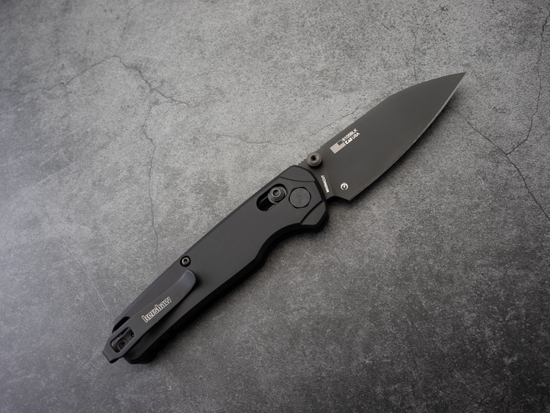 リバース・タントー型のブレードは日常使いに最適で、ブラックPVDコーティングがさらなる耐久性を実現。