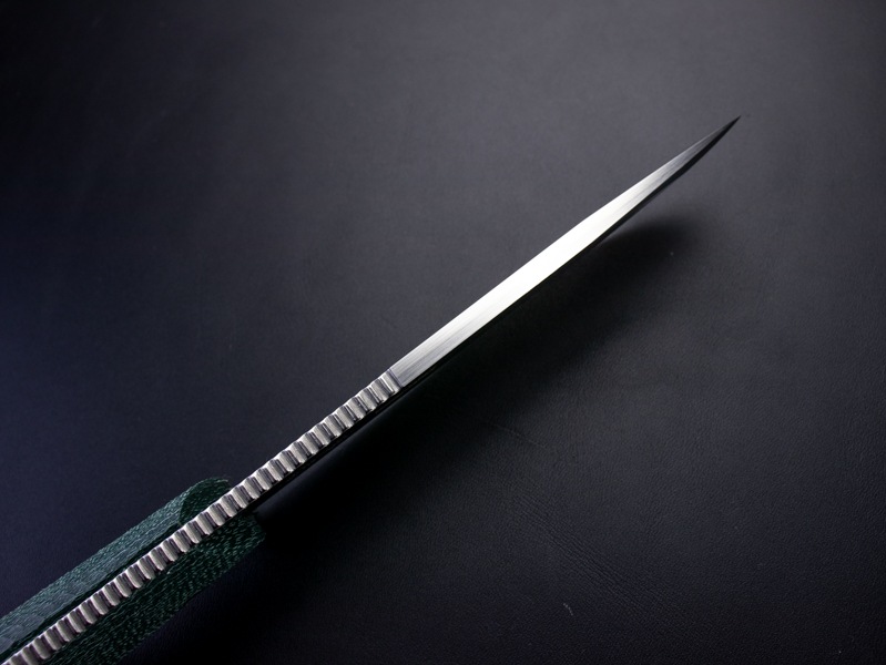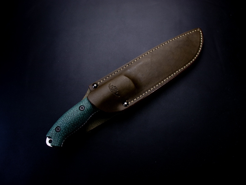 付属のグリーンレザーシースとあわせ、重厚感と存在感を兼ね備えたコレクターズピースです。