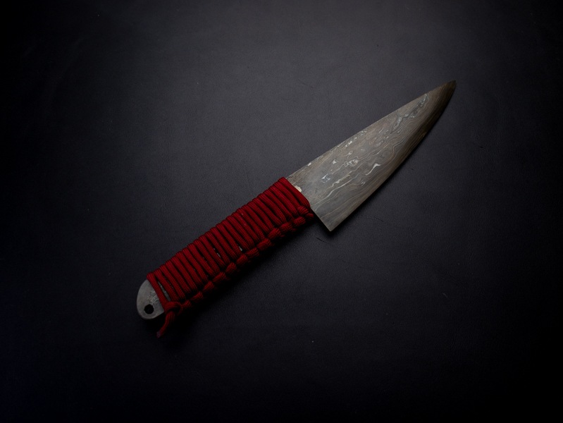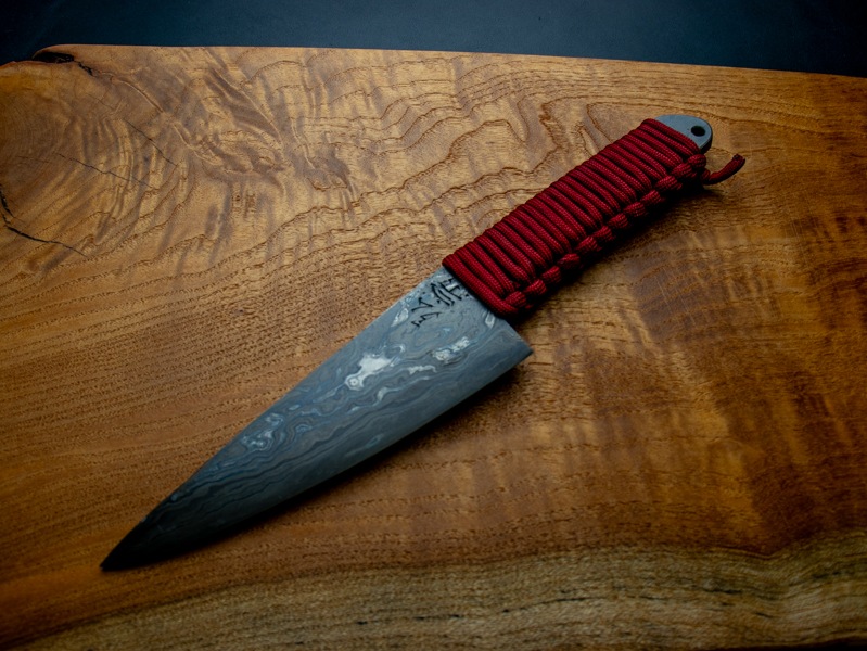 This handcrafted knife by swordsmith Hiromune Takaba measures 250mm in overall length and features a traditional cord-wrapped handle.