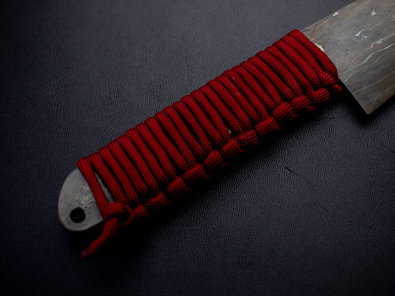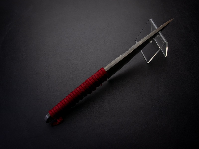 The red cord wrapping adds a striking visual accent, giving the piece a distinct presence reminiscent of traditional Japanese weapon aesthetics.