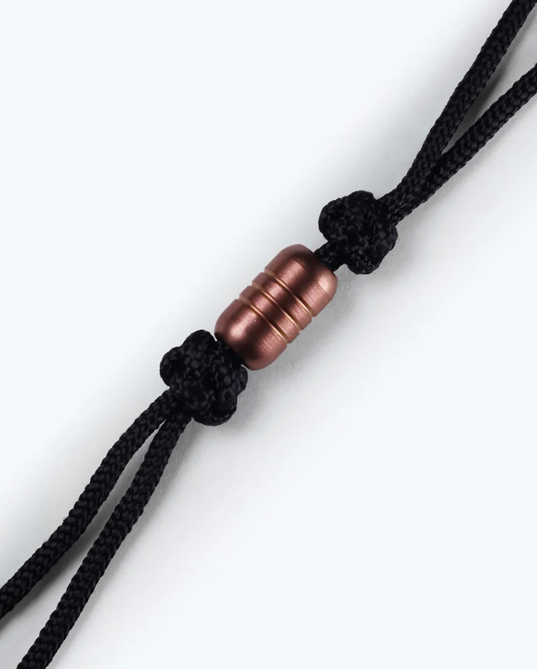 強度のあるパラコードに、刻み入りのナイロンビーズを組み合わせた作りで、