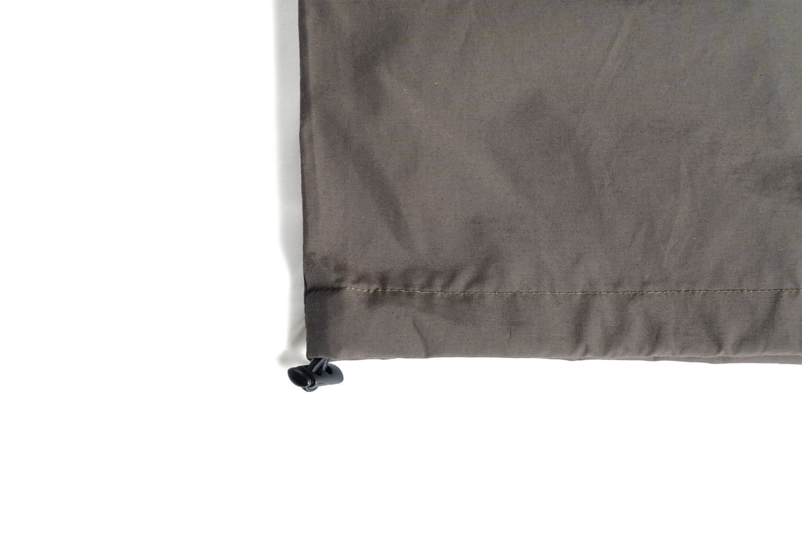 コットンのやわらかさがありつつ、ナイロンらしい軽さとハリも感じられます。