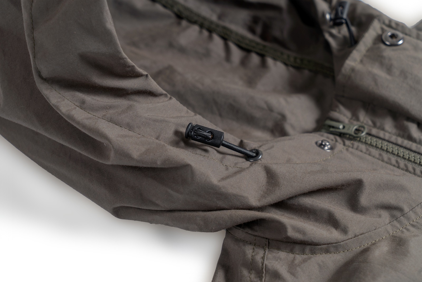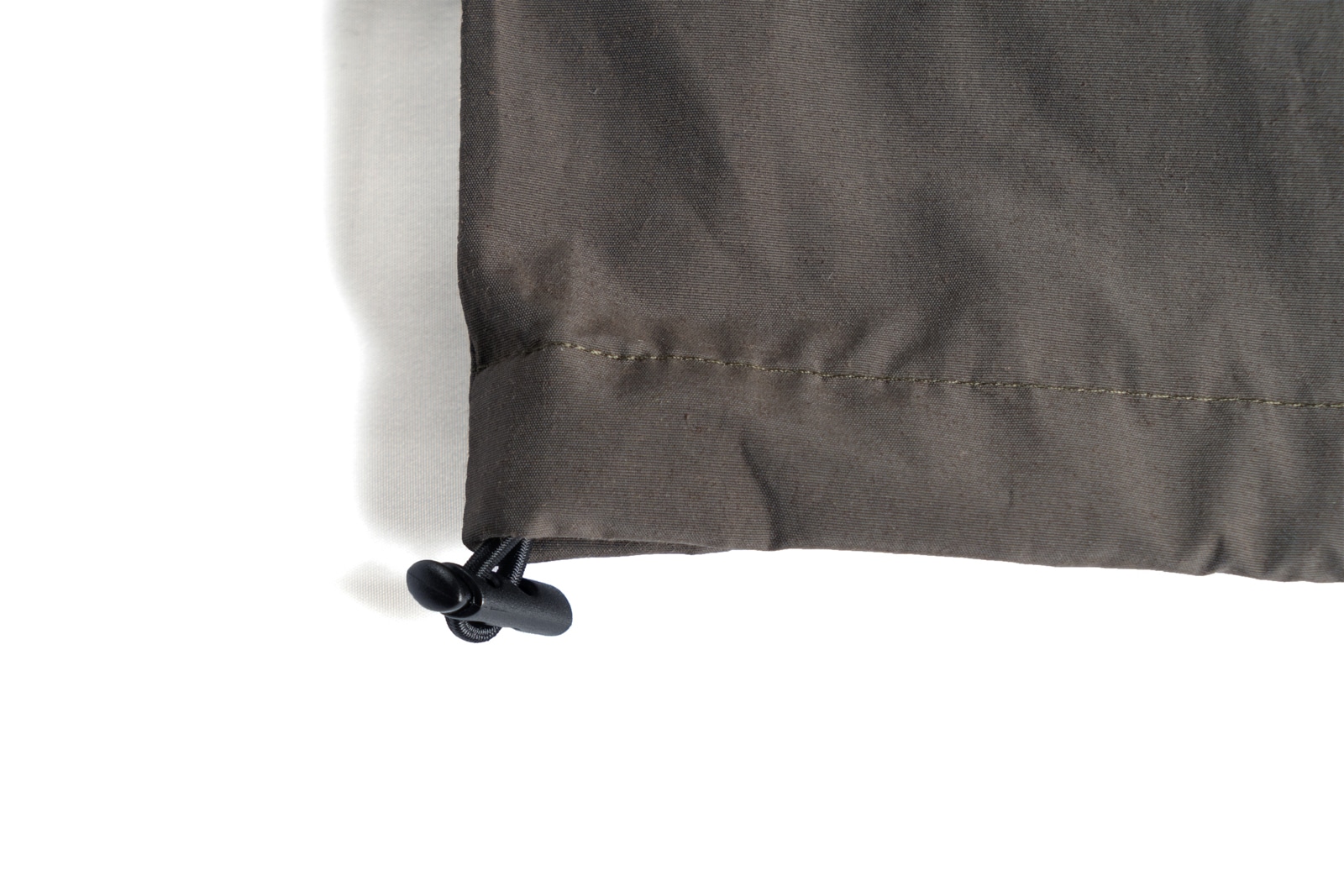 フードや袖まわりもシンプルな作りで、道具感のある服装にもよく馴染みます。