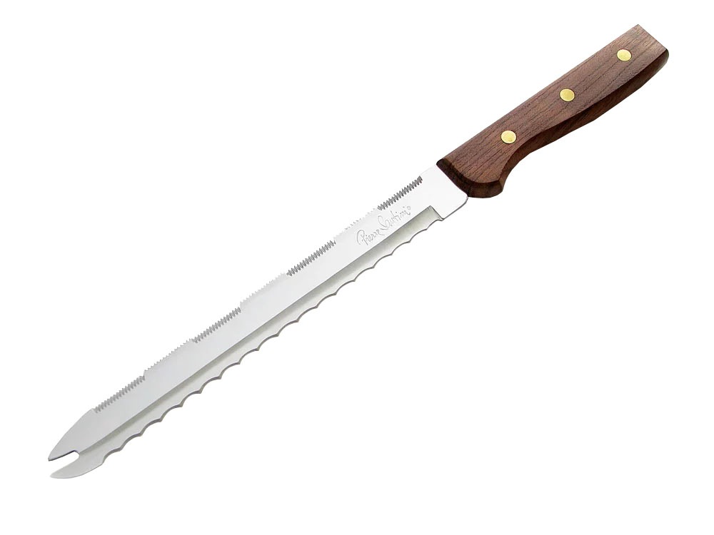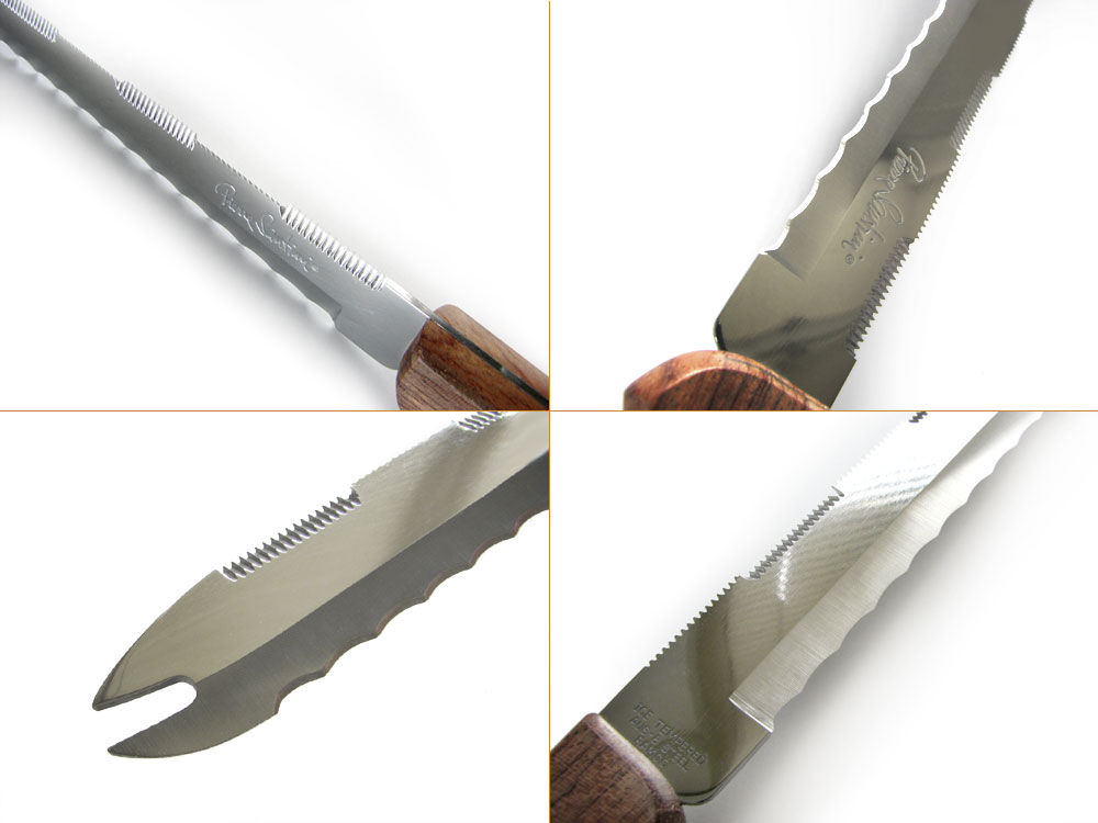 背側の波刃は冷凍切りとして、刃先は取り分け用フォークとして至れり尽くせりの包丁です。